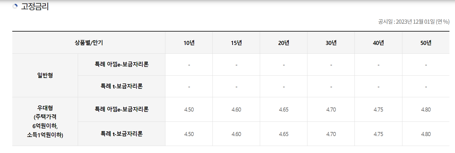 금리가 다소 아쉬운 부분이 있습니다. 우대금리를 적용해도 4.25~4.55%부터 시작해서 생각보다 저렴하지 않습니다. 그래서 디딤돌 대출처럼 2%대 금리를 적용하기가 쉽지 않은 것 같습니다(특별지급=생각보다 좋지 않음)